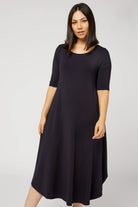 The Tani Relaxed Tri Dress is a fabulous all purpose dress. Fitted across the bust and shoulders with an elbow length sleeve and skimming over the body down to the wide, draped hem in the most flattering way. It's a perfect travel style that can be dressed up by adding jewellery & heels or dressed down paired with white sneakers for a comfy travel look.