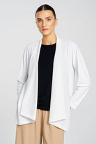 A refined layering piece with everyday ease, the Club Jacket is crafted from Mela Purdie’s matte-finish Powder Knit – a Japanese stretch fabrication known for its comfort and clean drape. With its fluid silhouette, open front, and soft structure, this jacket is the perfect go-to for polished yet relaxed dressing.