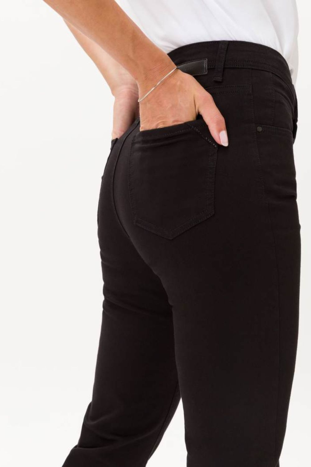 Update your denim collection with the Brax Mary 5 Pocket Jeans in Black, offering the perfect blend of comfort, style and sophistication. Crafted from ultralight stretch denim, this pair feels soft against the skin while maintaining its shape wear after wear. The slim fit and narrow leg create a flattering silhouette, finished with subtle rhinestone accents for a touch of understated glamour. Ideal for laid-back days or dressed-up evenings, these jeans are an easy choice for effortless style.