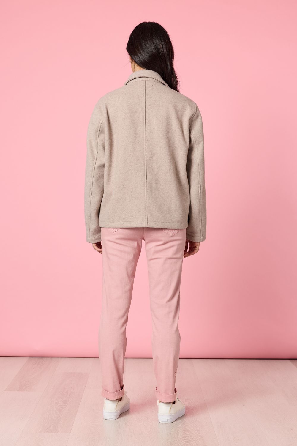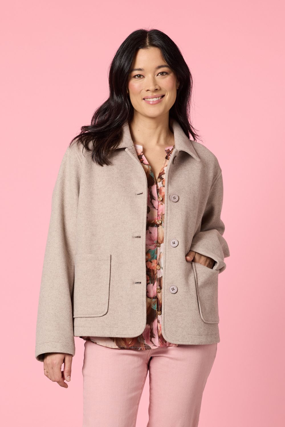 The Montana Car Coat by Gordon Smith is a timeless outerwear piece that brings clean, modern structure to everyday dressing. Crafted in a soft, warm fabric blend, it offers a smooth hand feel while maintaining a polished, tailored appearance. The classic car coat length and boxy silhouette create an easy, relaxed fit that layers effortlessly across seasons. Finished with a neat collar, button-front closure and oversized patch pockets, it delivers understated detail with a refined edge.
