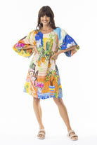 Be transported to coastal bliss in the stunning Sardinia Dress in Waterscape. Crafted from 100% rayon, this flowing piece is soft, breathable, and full of movement. Designed with statement puff sleeves, a wide hem, and a flattering crew neckline, it’s a true standout for those who love vibrant, artistic prints and bold, confident style. Perfect for summer events or holidays by the sea, it captures the essence of carefree elegance.