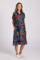Product Name: Silvermaple Collection Grace Button Dress | Navy Bloom