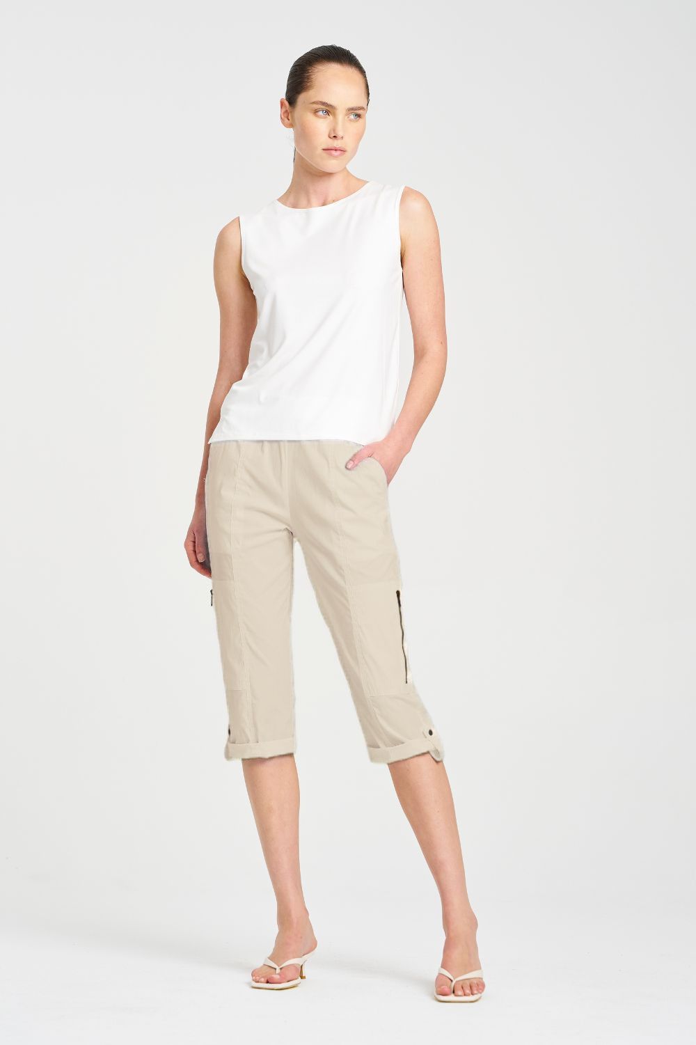 The Mela Purdie Cropped Zip Cargo is crafted from the brand’s Microprene — a crisp, comfortable stretch cotton blend with structure and ease. Featuring a relaxed fit, elasticated waist, zip pockets at the sides, and adjustable studded tab details at the hem, these cropped pants bring a utility-inspired edge to a classic silhouette. Designed and made in Australia, they’re a versatile wardrobe essential.