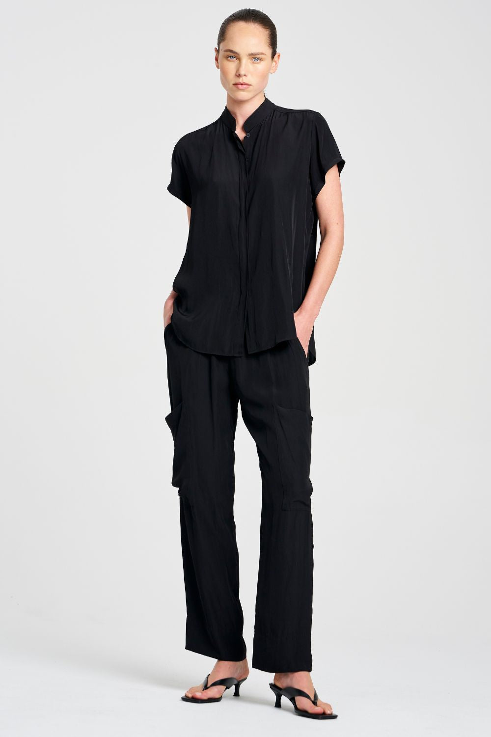 The Mela Purdie Soft Cargo Pant is crafted from the brand’s Mache fabric, offering relaxed fluidity and a smooth lustre finish. Designed with a versatile hem tab and button, these full-length pants can be adjusted to a cropped length for added style and practicality. Featuring an elasticated waistband and side pockets, they combine comfort with function. Proudly designed and made in Australia, these pants are perfect for transitioning through the seasons.