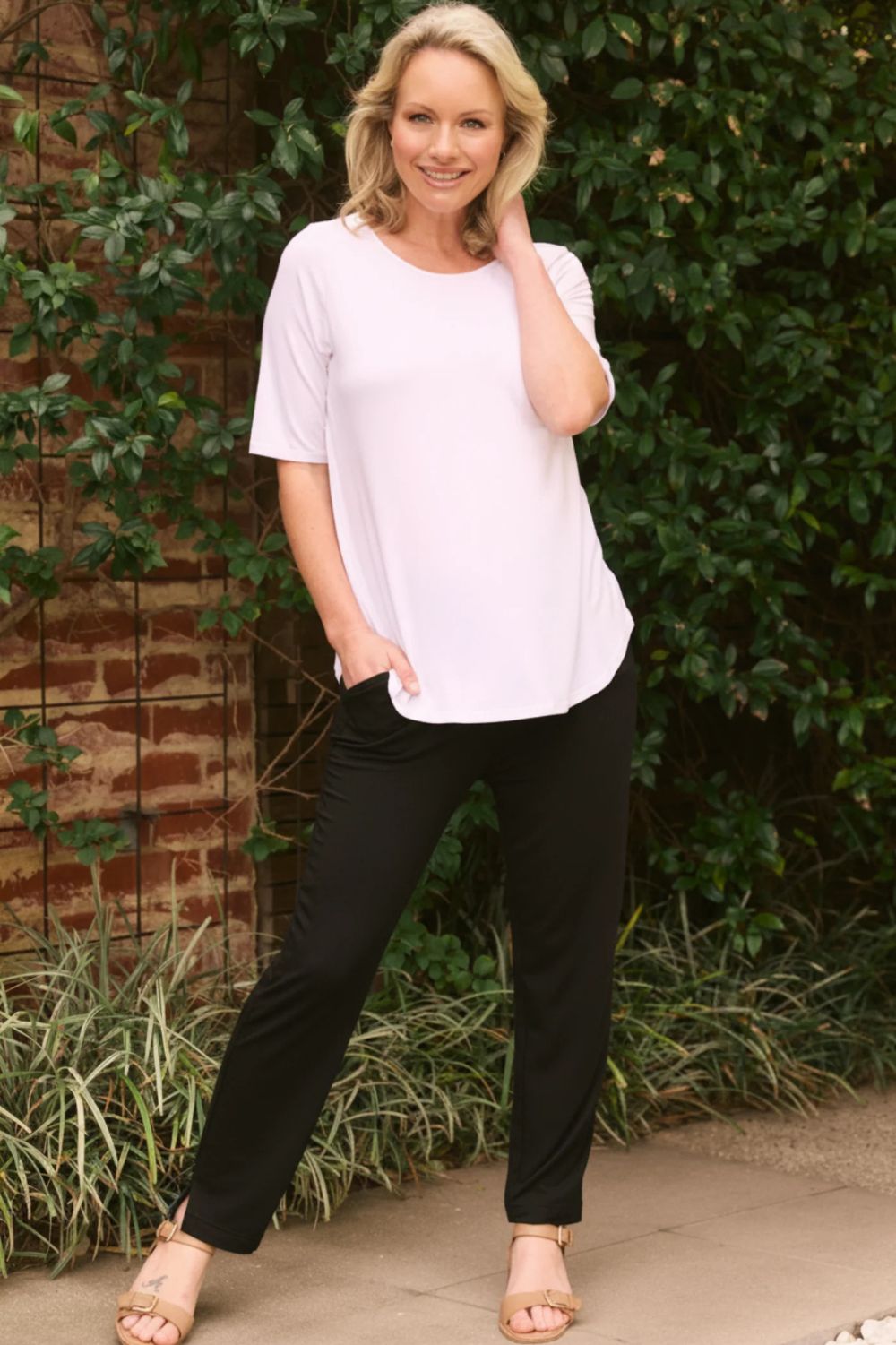 Practical and stylish, the pants include two side pockets and subtle side splits at the hem, perfect for effortless movement. Soft, breathable Micro Modal fabric ensures all-day comfort, making these pants a versatile addition to any wardrobe.