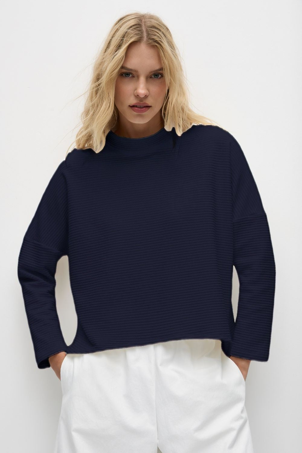 Jovie The Label Halle Sweater | Navy/Multi Coloured Sleeve