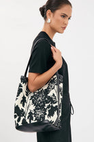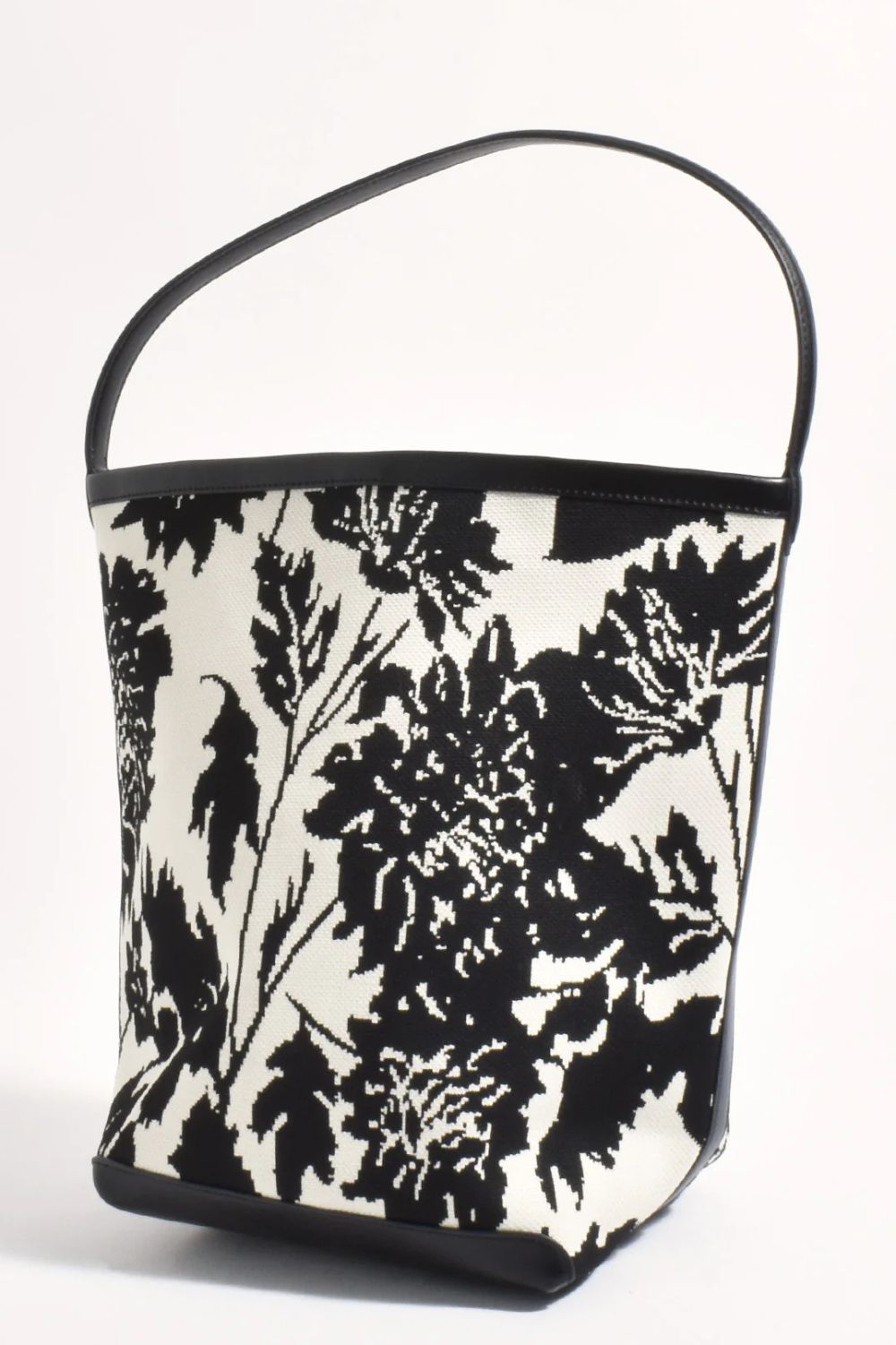 Adorne Jasmin Floral Bucket Bag | Black/Cream