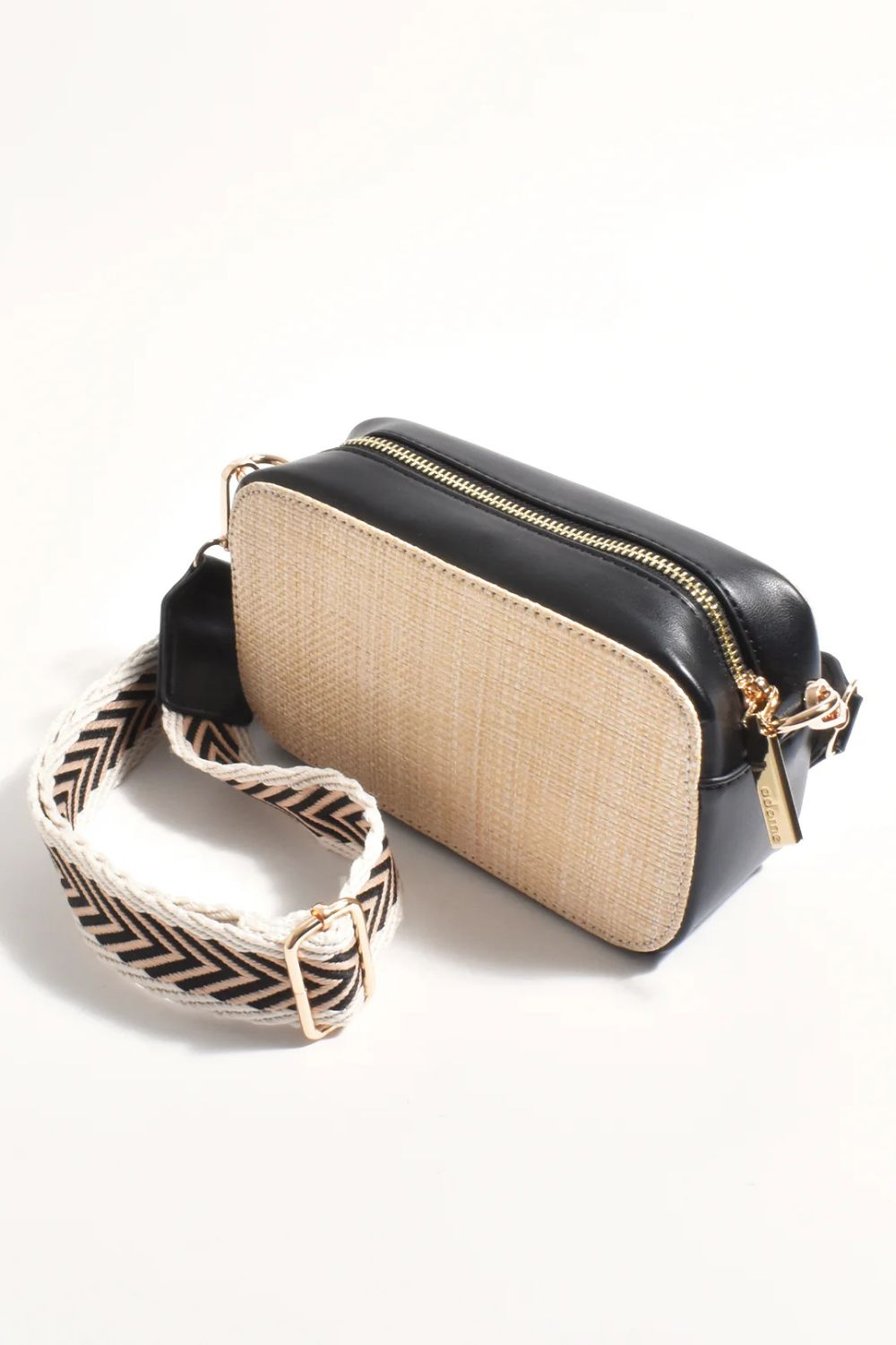 Adorne Joey Woven Camera Bag | Black/Natural