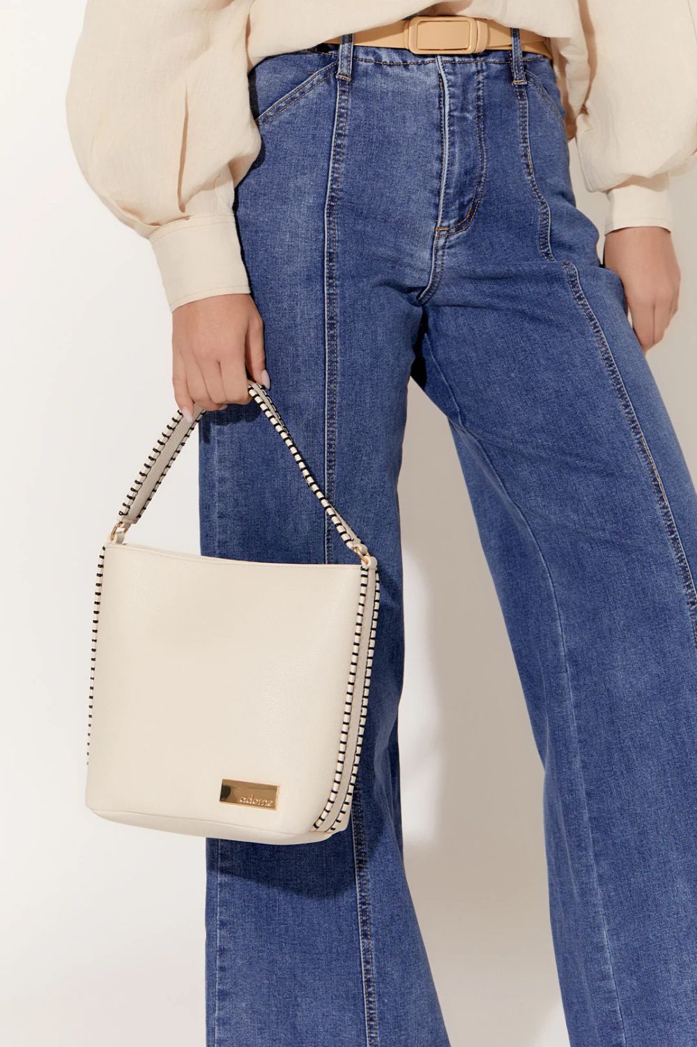 The Stevie Blanket Stitch Bucket Bag by Adorne blends relaxed styling with refined detail, crafted in soft vegan leather with beautiful contrast stitching that adds a unique artisan touch. Designed in a roomy bucket silhouette, it features a secure magnetic closure, an internal zipped pocket for valuables and a removable, adjustable strap so you can switch from shoulder to cross-body with ease.