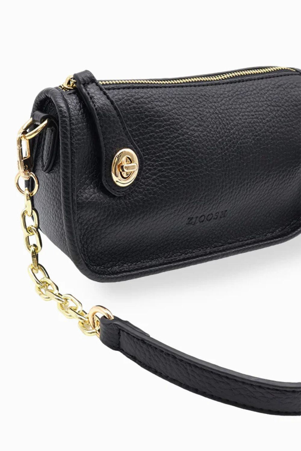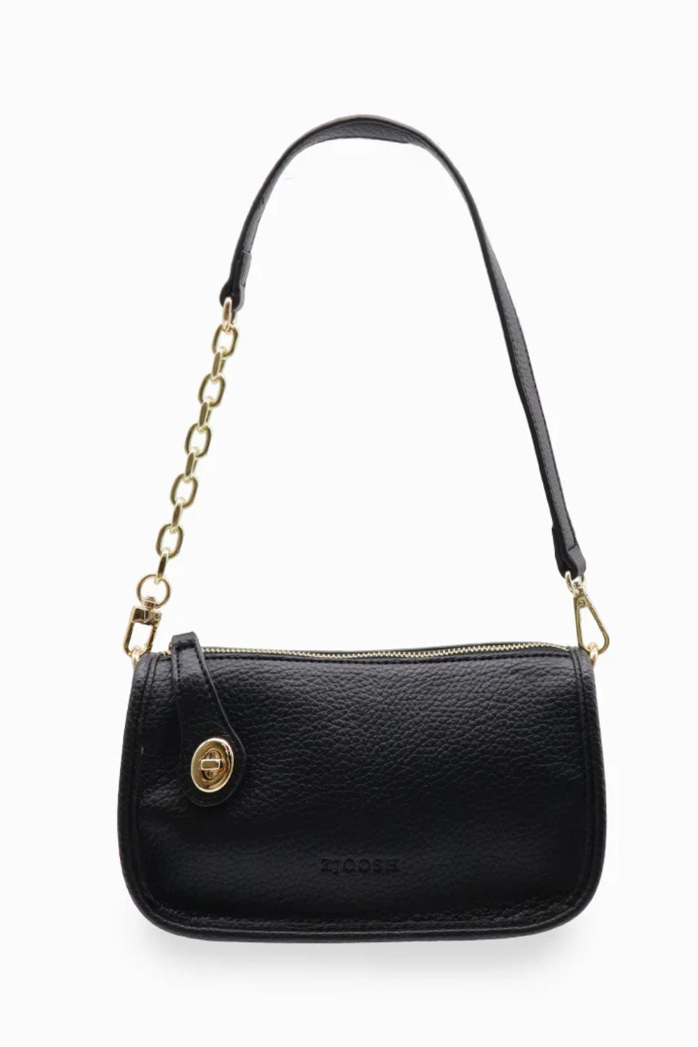 Featuring a chic shoulder strap with luxe gold chain detailing, it strikes the perfect balance between glamour and practicality. Compact yet roomy enough for your essentials, the Stacey transitions seamlessly from daytime outings to evening cocktails.