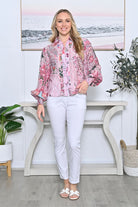 Add a touch of everyday romance with the Elise Blouse in Petal – a feminine floral favourite that brings charm to any wardrobe. Crafted from a breathable cotton-blend fabric, this lightweight blouse features a button-through front and a softly structured collar for timeless appeal.