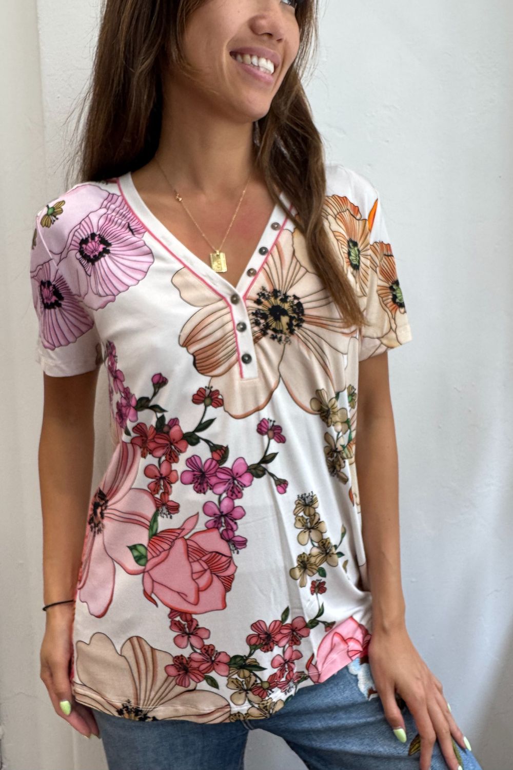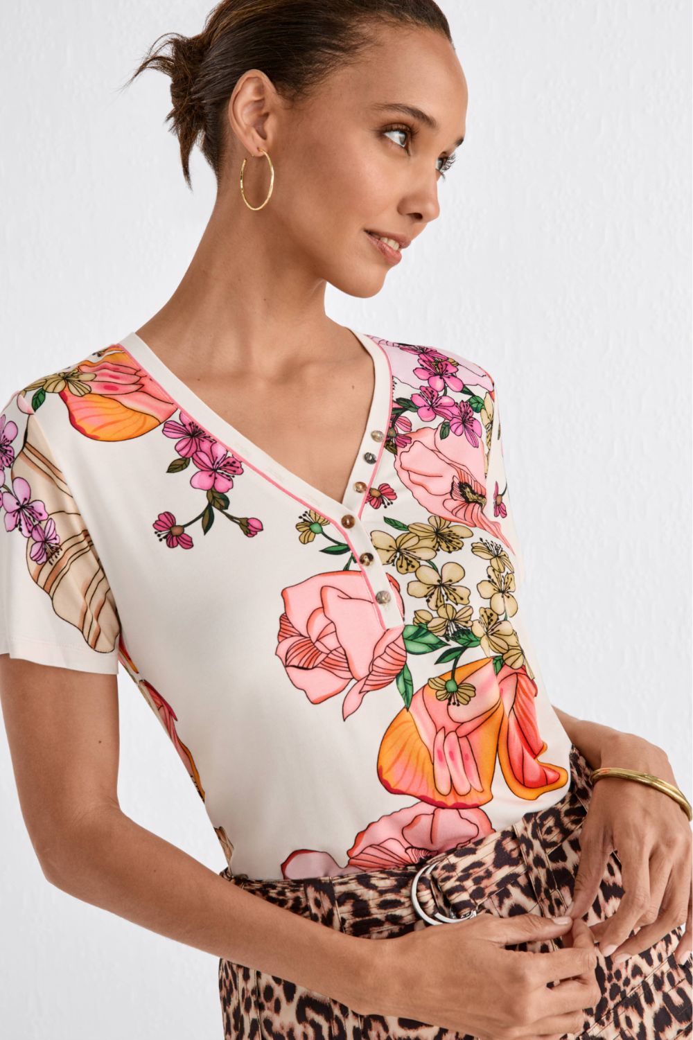 Product Name: Johnny Was The Janie Favourite Short Sleeve Henley Tee | Rosabelia