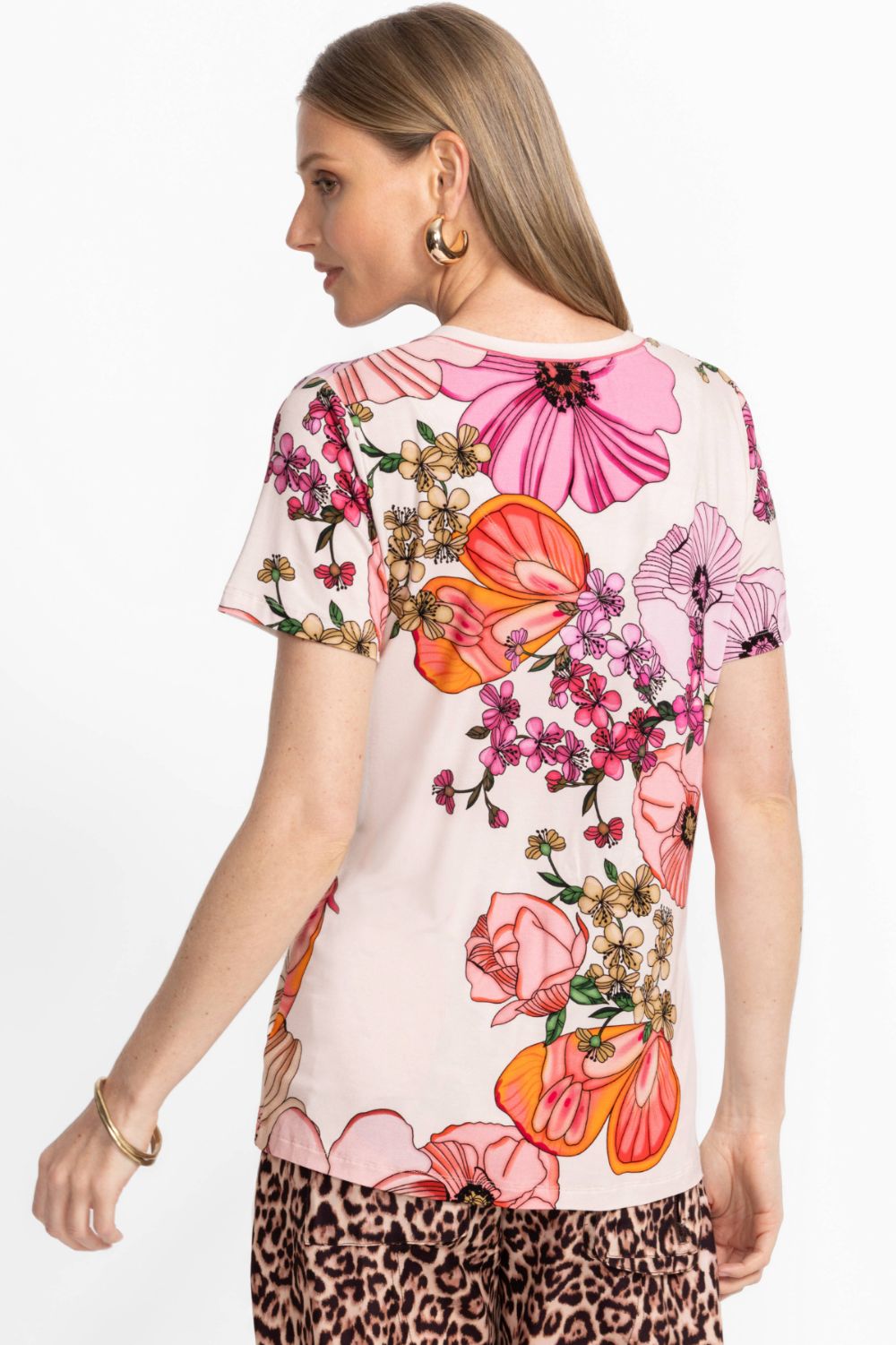 Adorned with a vibrant floral and butterfly print, the Rosabelia design captures the signature artistic flair of Johnny Was. The draped fit and gentle stretch provide all-day ease, making it a go-to for everyday wear with a touch of statement style.